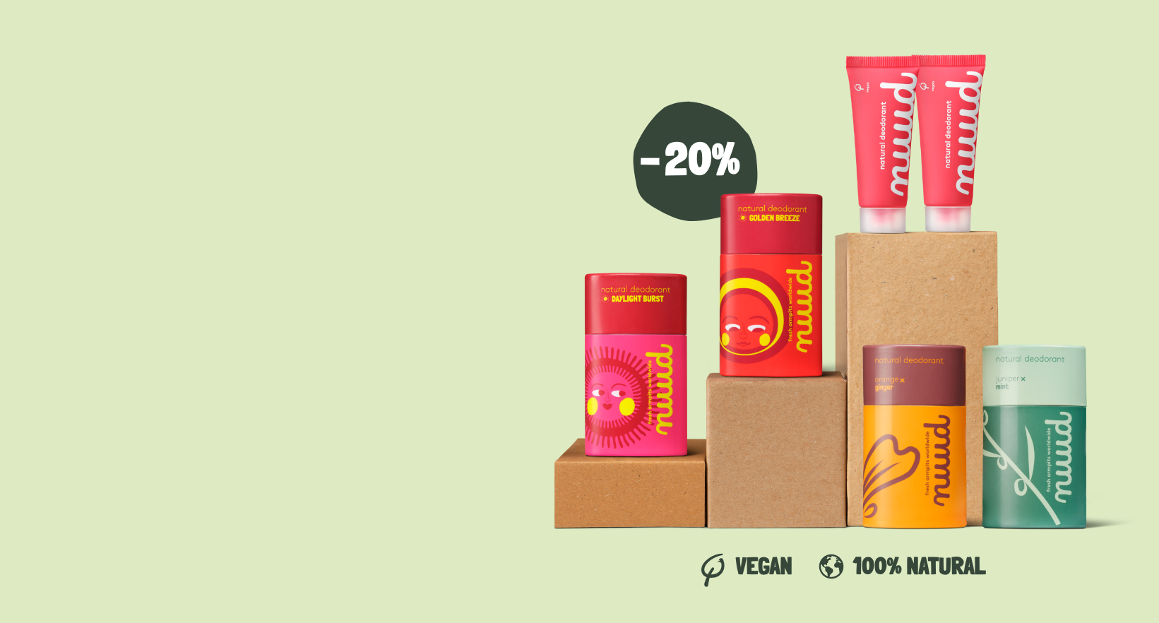 We stand for freshness without aluminium, fragrances, parabens, salt, or propellants. No deodorant is best for the planet. After that comes nuud.