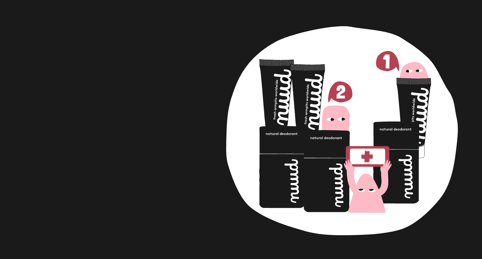 We stand for freshness without aluminium, fragrances, parabens, salt, or propellants. No deodorant is best for the planet. After that comes nuud.