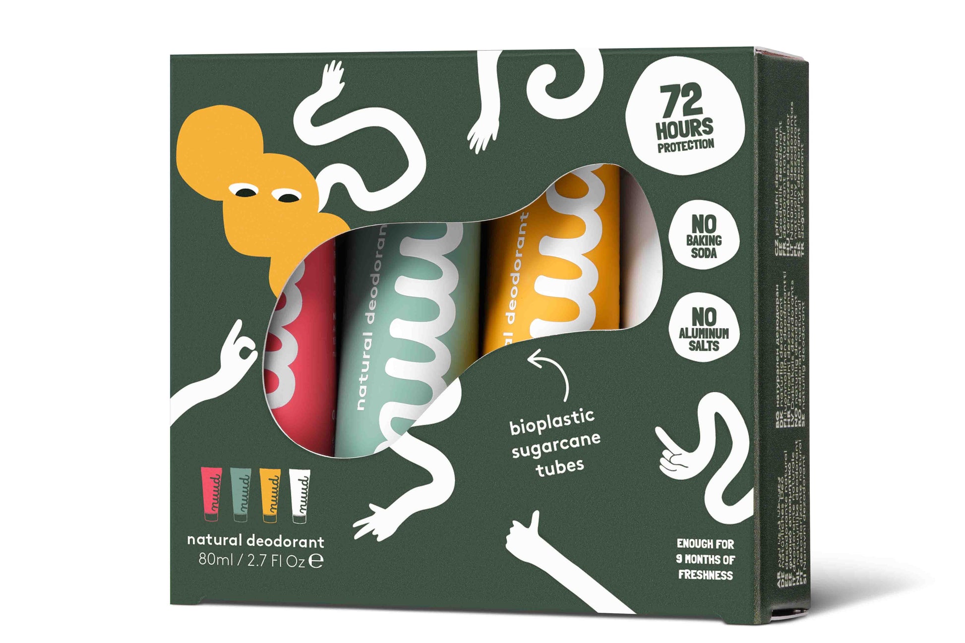 The Family Pack is a family sized nuud supply. For you and your three flatmates. Or for you and your besties, colleagues, or teammates. In other words anyone you call family. Four tubes in four different colors so that everyone knows whose nuud is whose. And, it's 42% cheaper than a Starter Pack! Now we're thinking about - even smarter than a Smarter Pack.